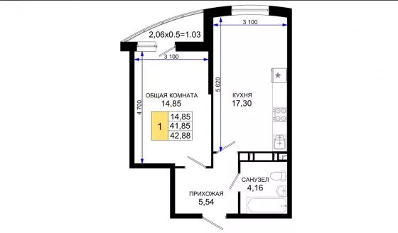Продается однокомнатная новостройка, 46 кв.м., 10/21 эт