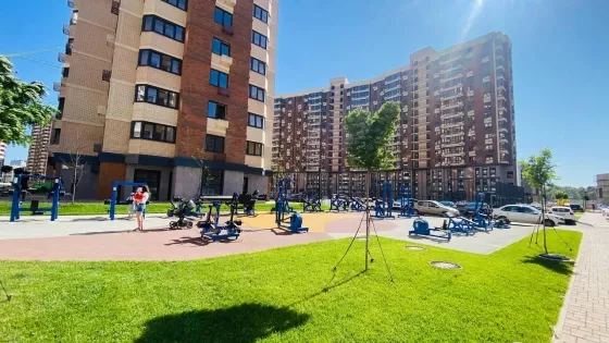 -Возле дома огромная детская площадка, шикарная аллея, монгальная зона.