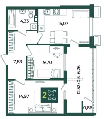 Двухкомнатная квартира в новом доме класса комфорт+.