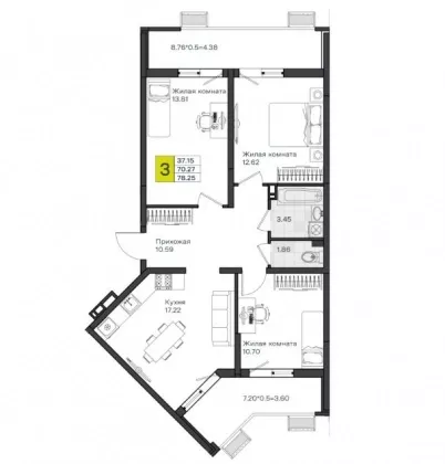 Продается 3-х комн. новостройка, 64 кв.м., 8/8 эт