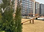 Прогулочные аллеи, велодорожка, игровые площадки для детей, места для отдыха взрослых, спортивные площадки, магазины, места для парковки велосипедов, колясок и самокатов.