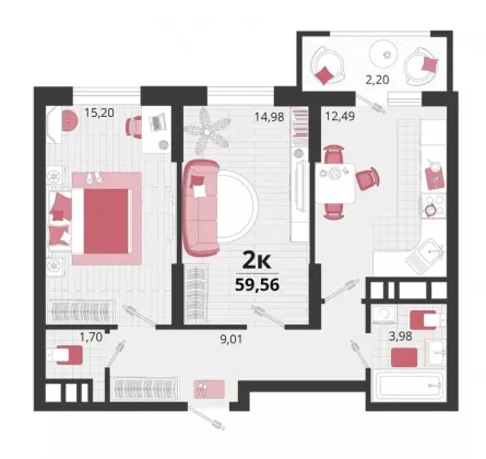 Продается 2-х комн. новостройка, 59.56 кв.м., 12/18 эт