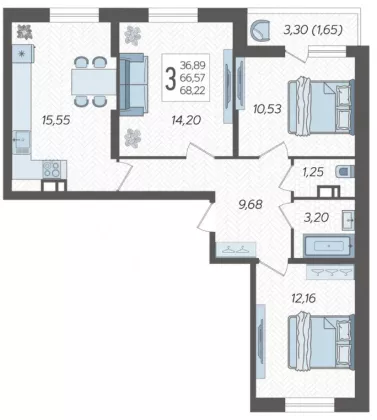 Продается 3-х комн. новостройка, 68.22 кв.м., 9/12 эт