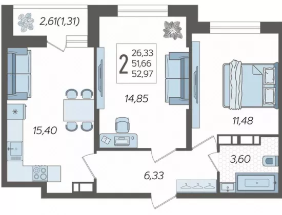 | Жилая площадь | 26.33 |