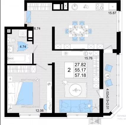 Продается 2-х комн. новостройка, 57.18 кв.м., 4/18 эт