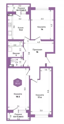 Площадь, кв.м.87.4