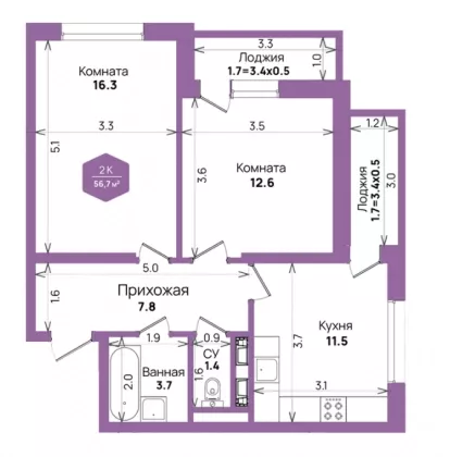 В избранное Двухкомнатная квартира