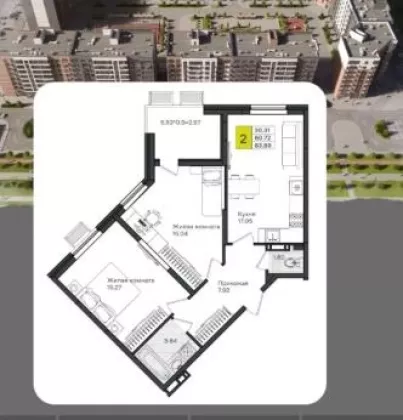 Продается 2-х комн. новостройка, 64 кв.м., 4/8 эт