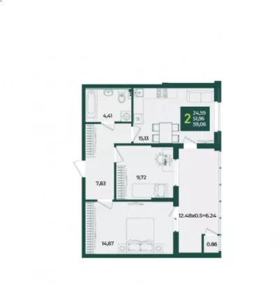 Продается 2-х комн. новостройка, 59.06 кв.м., 8/21 эт