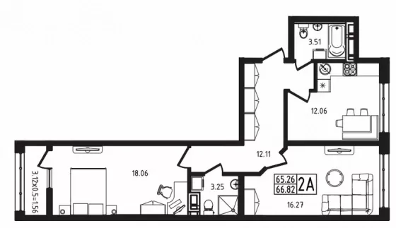Продается 2-х комн. новостройка, 66.82 кв.м., 1/9 эт