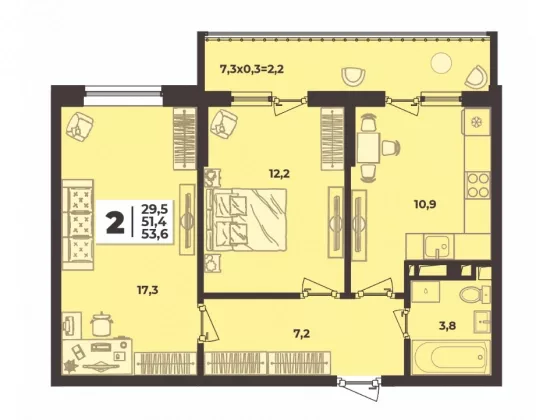 Двухкомнатная квартира в комплексе класса комфорт+.