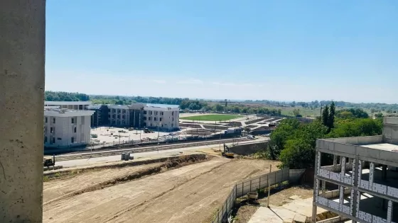 - Перед домом школа для одарённых детей "Наследие" (филиал сочинского "Сириуса")