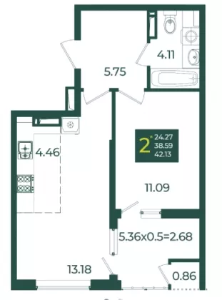 Продается 2-х комн. новостройка, 44.3 кв.м., 17/18 эт