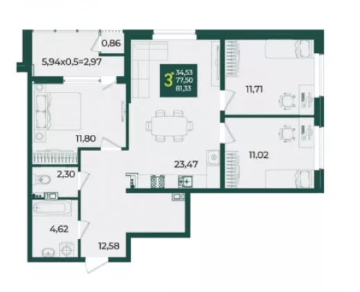 | Комнат в квартире | 3 |