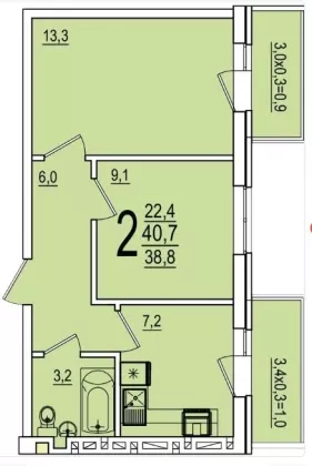 Продается 2-х комн. новостройка, 40.7 кв.м., 2/5 эт