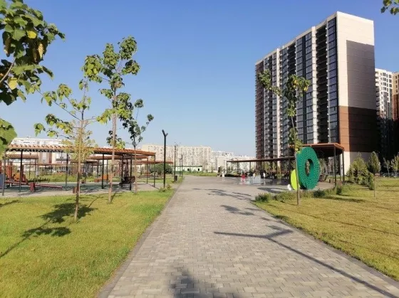Гостевые и подземные парковки, поликлиника, парк внутри района «Флагманский» 42000м2, уличные тренажеры и велодорожки, один из самых больших памп-треков в городе -1500м2, зона барбекю с мангалами и беседками.