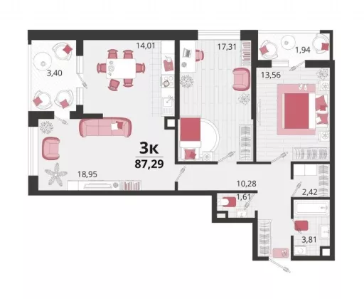 Комнат в квартире3
