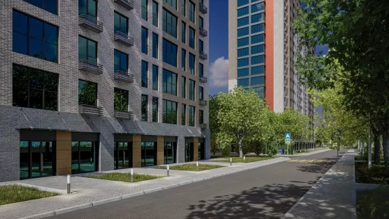 В жилом комплексе своя особая внутренняя среда, прогулочные аллеи с фонтаном, уютные зеленые дворы со скамейками, игровые и спортивные площадки с безопасным покрытием!
