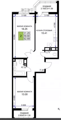 | Площадь, кв.м. | 62.69 |