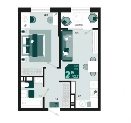 Продается 2-х комн. новостройка, 42.7 кв.м., 9/18 эт