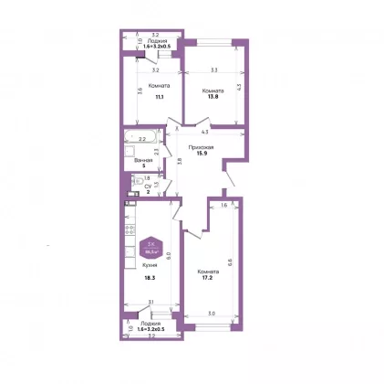 Комнат в квартире3
