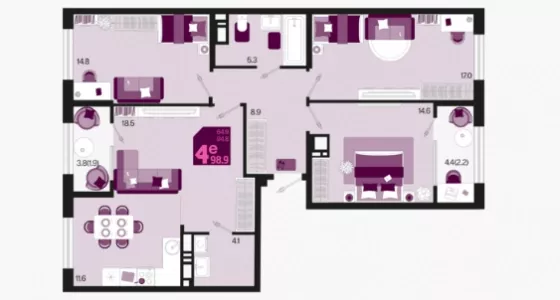 Продается 4-х комн. новостройка, 98.9 кв.м., 9/18 эт