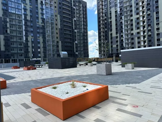 Ландшафтное озеленение, зоны для отдыха,  детские и спортивные площадки, скейт-парк, сквер, площадки для питомцев, свой детский сад. Уютные подъезды с колясочными.