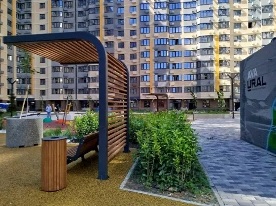 Во дворе   многофункциональные спортивные площадки с тренажерами и для занятия йогой, игровая  площадка для детей  разного возраста, также площадка для детей 3-7 лет, уединённые места для отдыха, велодорожка по всему периметру двора.