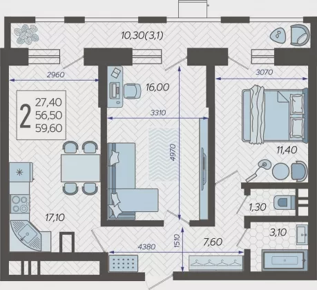 Площадь, кв.м.59.6