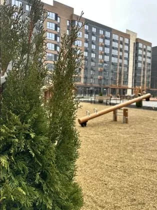 Прогулочные аллеи, велодорожка, игровые площадки для детей, места для отдыха взрослых, спортивные площадки, магазины, места для парковки велосипедов, колясок и самокатов.