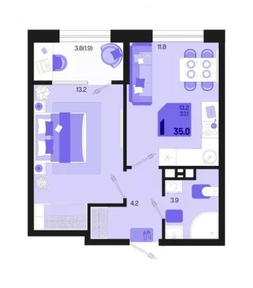 Продается однокомнатная новостройка, 41 кв.м., 6/18 эт