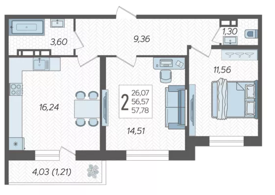 Площадь, кв.м.57.78
