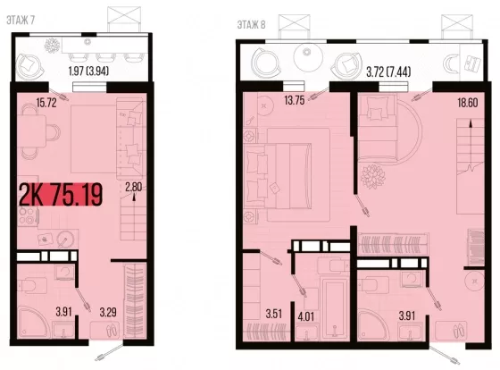 Продается 2-х комн. новостройка, 75.19 кв.м., 7/8 эт