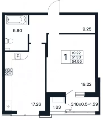 | Площадь, кв.м. | 54.55 |