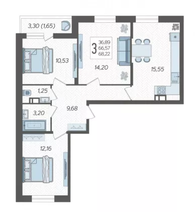 Продается 3-х комн. новостройка, 68.22 кв.м., 11/12 эт