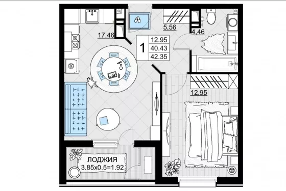 Продается однокомнатная новостройка, 46 кв.м., 8/18 эт