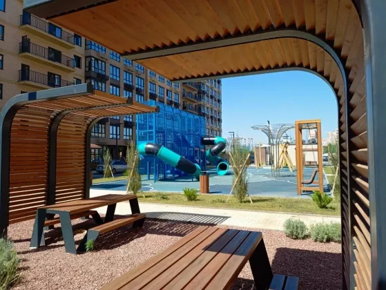 Множество детских зон для прогулок с малышами, так же площадки для любителей спорта.