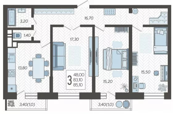 Продается 3-х комн. новостройка, 86.23 кв.м., 1/12 эт