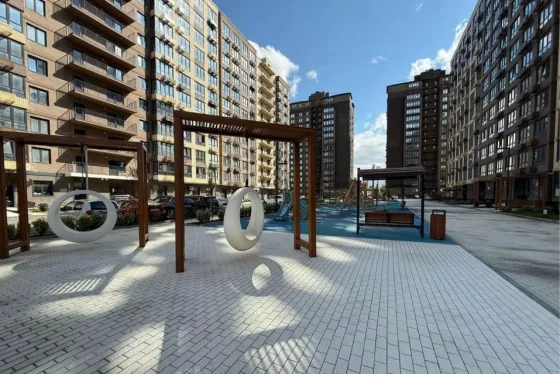 На территории комплекса организована безбарьерная среда, большое расстояние между домами, в каждом подъезде помещение для хранения колясок, самокатов, велосипедов.