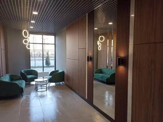 Новый микрорайон, в котором находится квартира, отличается комплексным благоустройством. В шаговой доступности находятся школа, четыре детских сада, поликлиника, парковая зона, прогулочные аллеи, детские и спортивные площадки, а также тематические зоны отдыха для взрослых и детей всех возрастов.