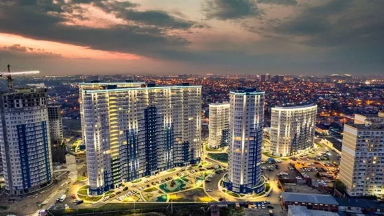 - ЖК расположен в Центральном округе г. Краснодар на берегу p.Kубaнь.