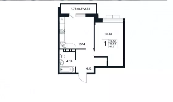Продается однокомнатная новостройка, 48 кв.м., 10/12 эт