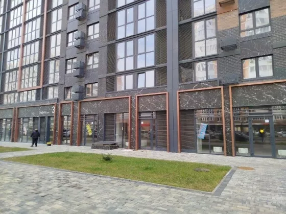 На первых этажах дома витражное остекление там коммерческие помещения разной направленности: магазины, студии фитнеса, салон красоты, аптеки, кафе много другое.