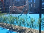 Комплекс средней этажности, большое количество парковочных мест, просторные и зеленые дворы, детские и спортивные площадки, современные подъезды с колясочными и санитарными комнатами.