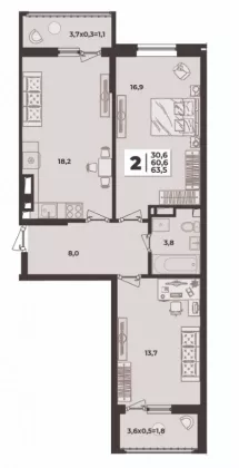 Двухкомнатная квартира в комплексе класса комфорт+.