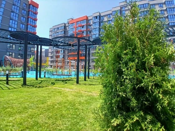 Комплекс средней этажности, большое количество парковочных мест, просторные и зеленые дворы, детские и спортивные площадки, современные подъезды с колясочными и санитарными комнатами.