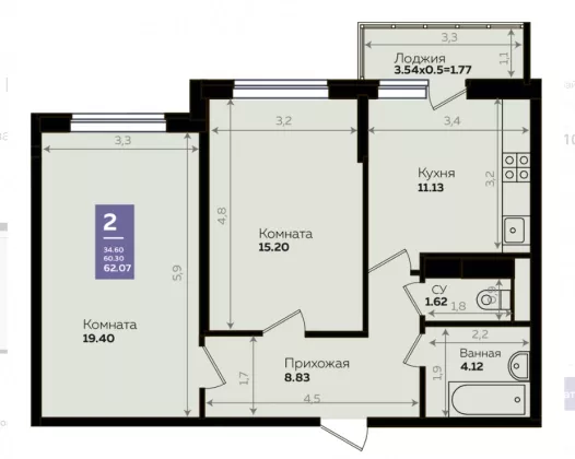 Продается 2-х комн. новостройка, 62.26 кв.м., 19/24 эт