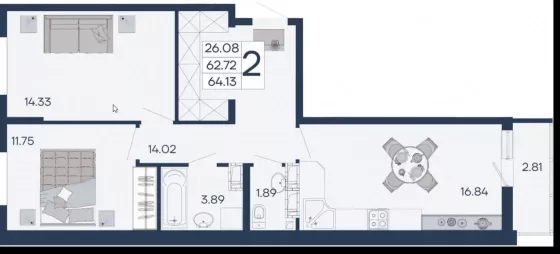 Продается 2-х комн. новостройка, 64.13 кв.м., 8/18 эт
