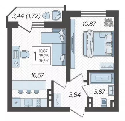 Продается однокомнатная новостройка, 37.61 кв.м., 18/23 эт