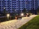 Закрытая территория с авторским ландшафтным дизайном, собственный хвойный парк, стильный фонтан, детские и спортивные площадки, зоны отдыха с беседками и шезлонгами, зоны на открытом воздухе оснащены зарядками, велодорожки и вело боксы.